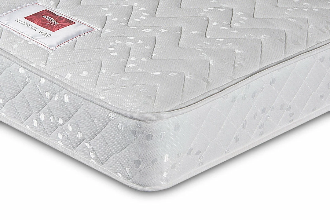 Check the Sleepwalk sprung Gold Mattress brought you by Airsprung Beds. The Supercoil® spring unit and soft white fillings make this one. The cover on this model is soft and white. Just rotate to add life.