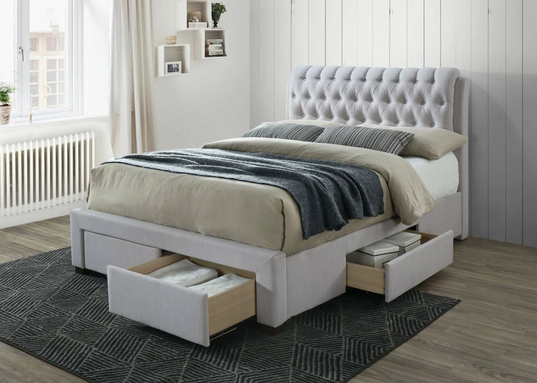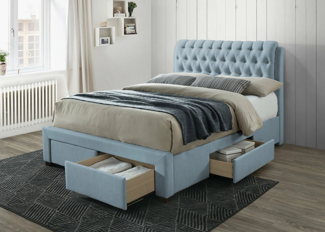This button 4 draws fabric beds going to add a stylish feature to you bedroom. With it’s multi button padded headboard with added support at the back makes it unique and modern. Available in a range of fabric colour optionsÂ