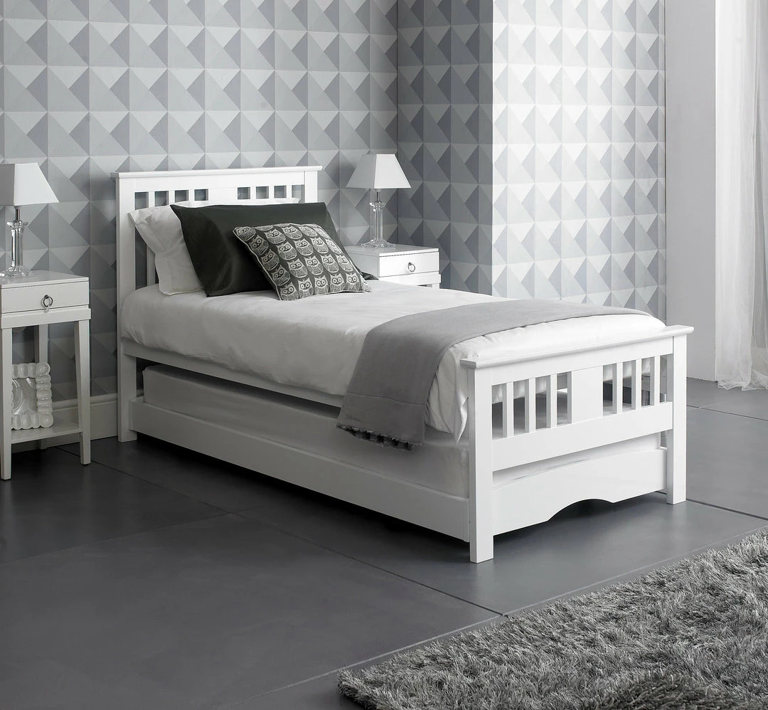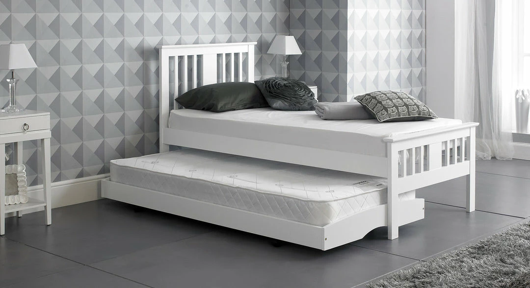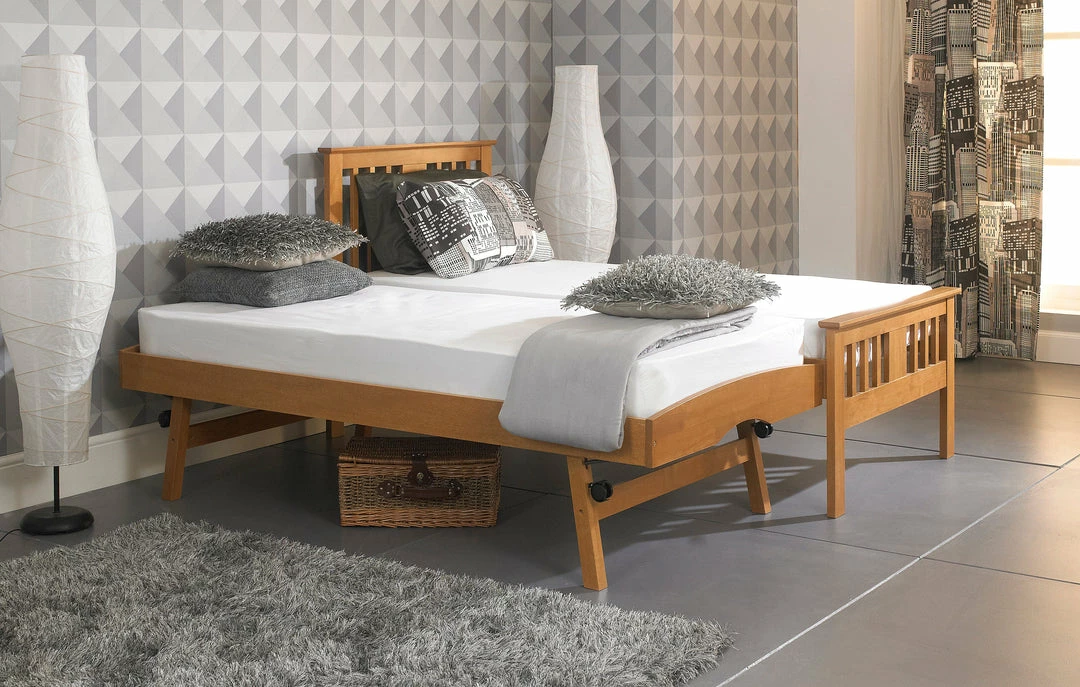This wooden guest bed could add style and elegance to any home. With a white and oak finish both could bring a certain feel to your bedroom decor. The under bed trundle is easy to use why not add some mattresses giving even more comfort. Make this wooden guest bed from Artisan Bed Company your next bedroom buy. Â