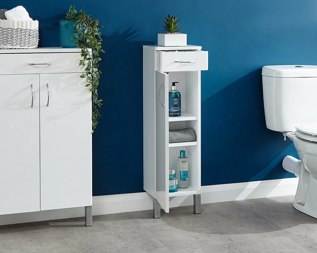With the GFW Moritz One Door One Drawer Cabinet you gain separate storage space inside this is great for organising. The shelving can be set at different heights so storing taller items is easily done. The depth is just right add your face towels to the draw and with surface space on the top flowers and ornaments could be shown. This unit comes flat packed so the you take this cabinet in will be less stressful and easily taken to the bathroom.Â