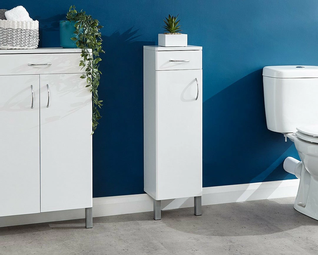 This white bathroom unit could make a real impact in terms of style and storage in the room. Built from strong MDF wood this buys going to stand the test of time and be in the home for years to come. The white colour is modern and vibrant and can work with other colours in the area.Â