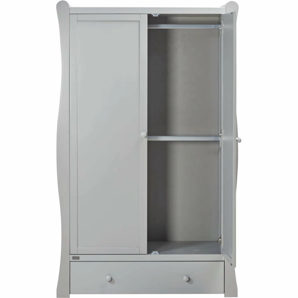 The East Coast Nursery Nebraska Wardrobe Grey has a 2 door 1 draw combination making it ideal for separating clothes in orderly fashion. There’s ample length for hanging there garments and with a center added rail you get two spaces for one.Â