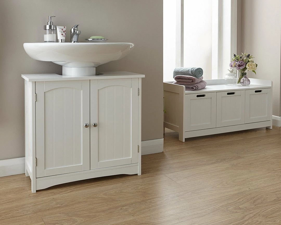 This under basin furniture piece brings style and practical benefits to the home. The two doors are easy to open and shelving ideal to store easy access bathroom items. Providing the best bathroom furniture with a modern twist is something GFW have brought with this range.Â