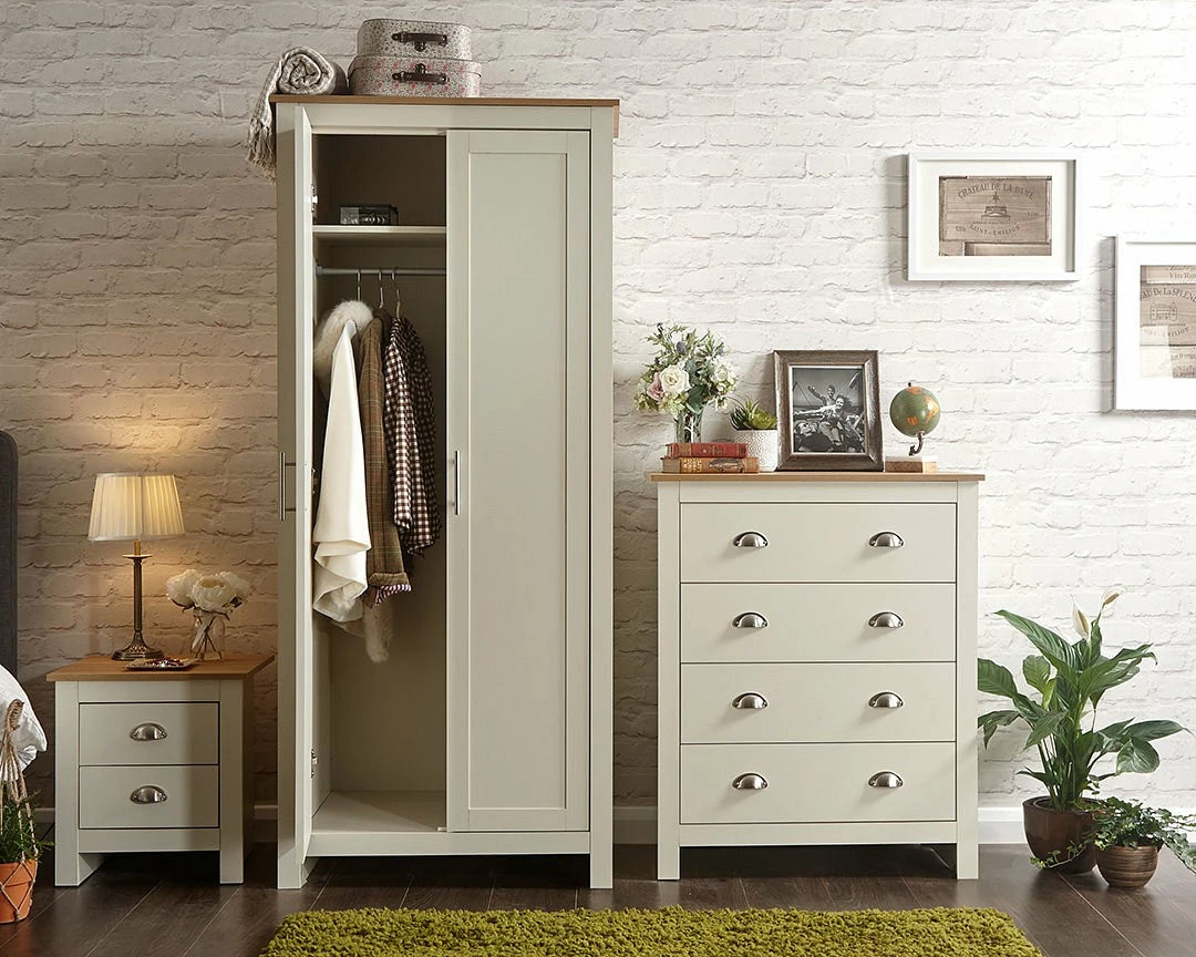 The GFW Lancaster 3 Piece Bedroom Set has a tall wardrobe that’s suitable to hang all your garments comfortable. The easy to use 2 doors with a straight line design and a dash of silver from the handles is going to make you contemporary. There’s also a shelf that would suit shoes or small objects.Â