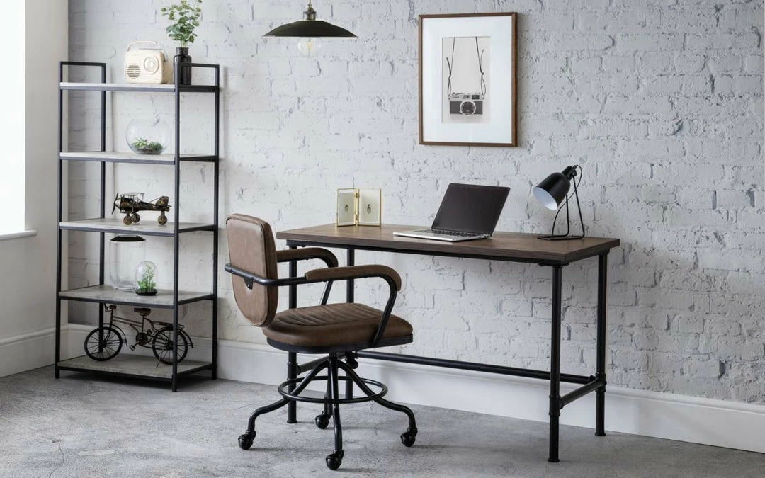 Whether the Julian Bowen Carnegie Pipe Desk is for an office or spare bedroom it’s not too chunky but just right. The industrial finish is in keeping with lot’s of themes work the whole room or make a statement with this desk. Solid in construction the powder coated steel pipe effect legs keep the desk sturdy.Â