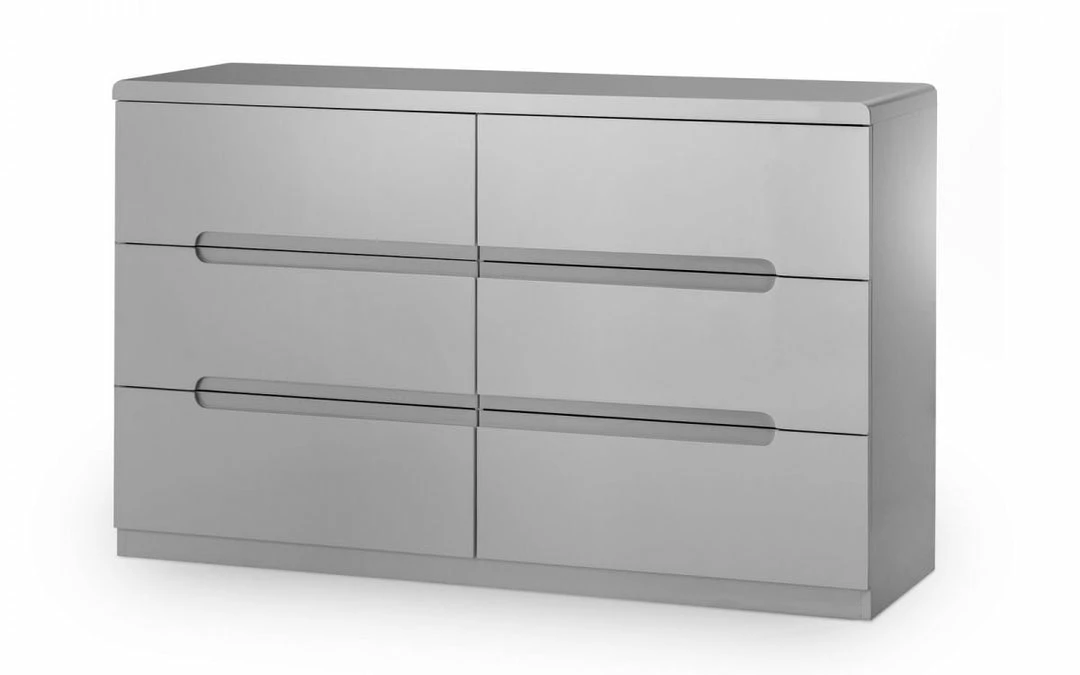 The Julian Bowen Manhattan 6 Drawer Wide Chest Grey is structurally sound with the grounded design. There’s also lot’s of area on the top to bring more colours and light to the room using lamps and pictures. The materials make this chest long lasting with the MDF wood having longevity values. With the high gloss lacquer keeping the set easy to maintain just wipe down and polish when needed.Â