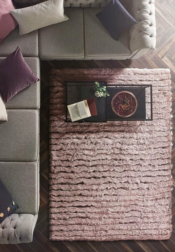 The Origins Carved Glamour Rug Blush Pink is rectangular shaped so think about the place this is going to be most effective. You can place other furniture over this pink rug also.