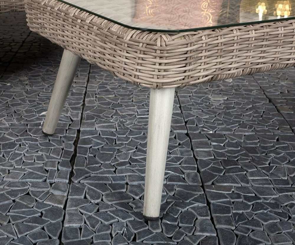 The Signature Weave Danielle 5 Seat Sofa Set is the perfect size for when entertaining or spending time as a family. The set features 2 chairs a sofa and table this would be suitable for 4 people comfortably. With the legs providing structure and stability ideal to place on grass, decking or patio areas.Â