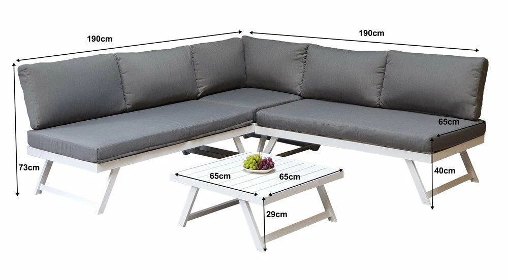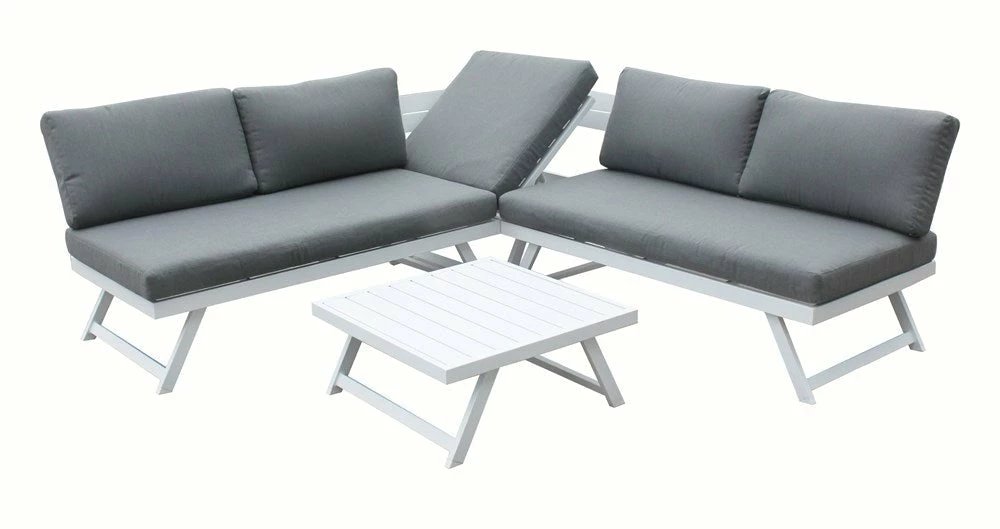 With a strong white metal frame the Signature Weave Kimmie Corner with adjustable Head Rest will remain stable and reliable for the long term. The table has reliable legs with a sturdy nature and plenty of surface area for food and drinks to be placed with easy access from the sofa. Place the set on patios, decking or grass area this set could work in a number of areas around the home. Â