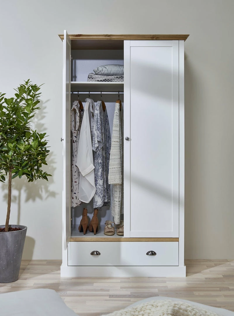 Model – Sandringham White And Pine 2 door 1 Drawer Wardrobe