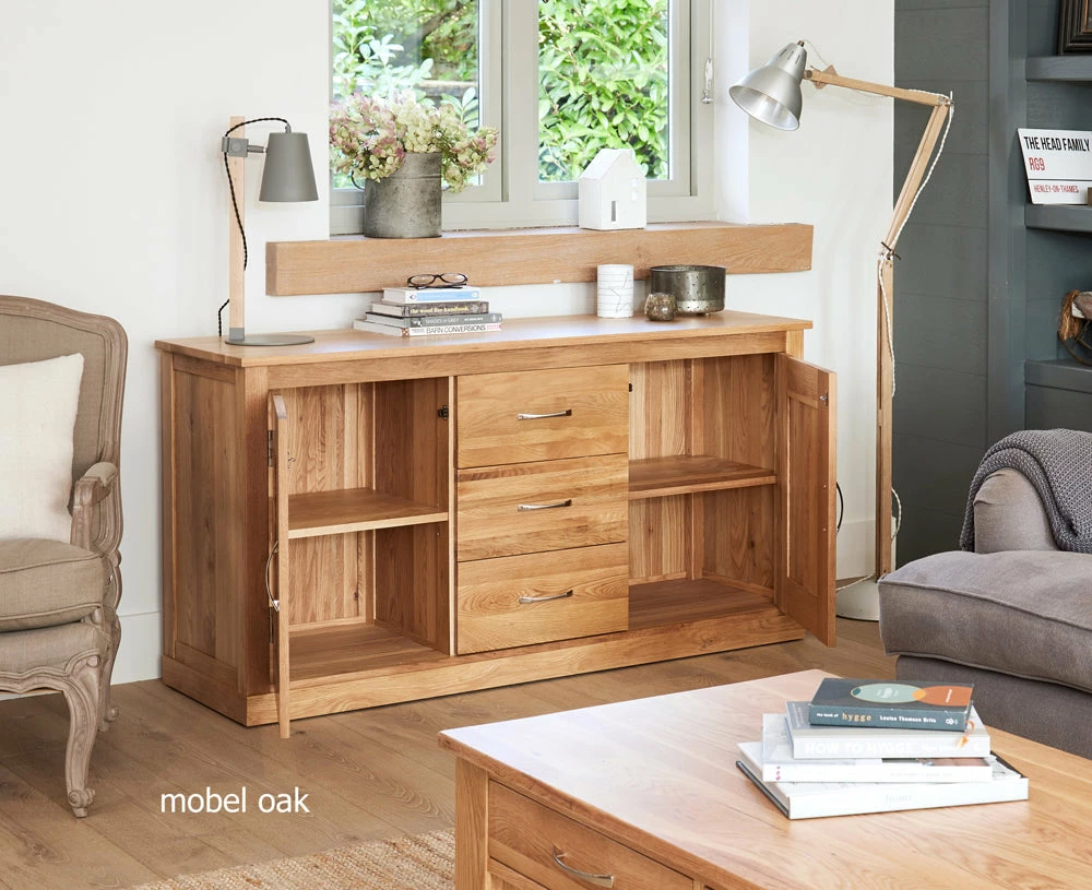 With the panelled sides on the Baumhaus Mobel Oak Large Sideboard showing charm it’s in the detail of design as to why this should be chosen for the home. The metal handles bring a splash of silver and make the side board easy to open. Coming ready assembled which means you should check door ways and round corners leading to the room.Â