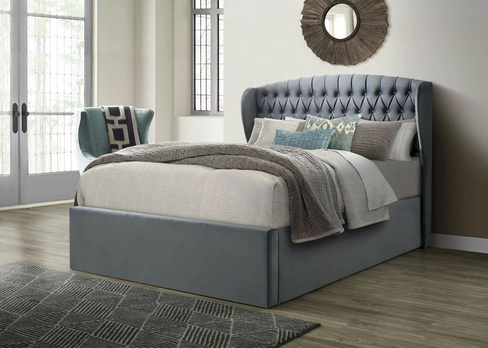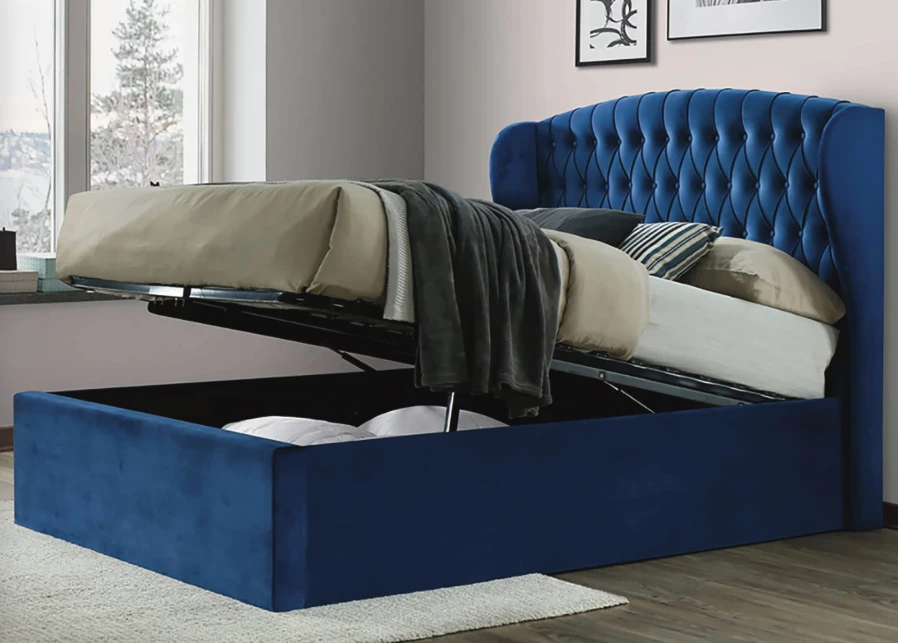 This stylish wing headboard ottoman bed would bring a grand item to your bedroom. The storage space in side is ideal for all types of bedding making this bed a space saving piece of furniture. The easy to use lift up base is well constructed with bow slats bringing a comfortable feel. Â