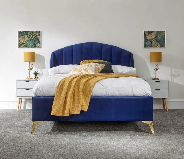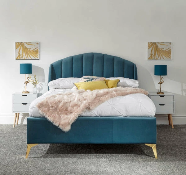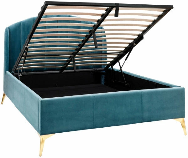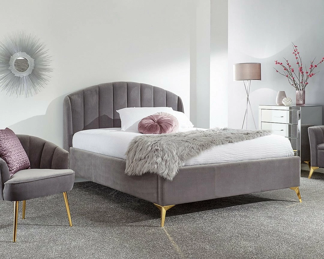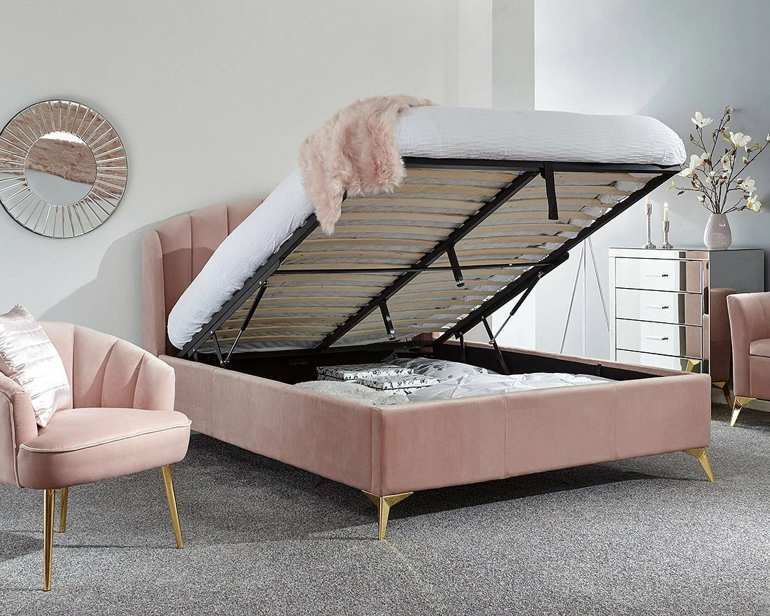 Whether the GFW Pettine End Lift Ottoman Bed is bought in grey or pink the stylish material will bring luxury to the bedroom. The storage space inside could be used for multiple objects like clothing and bedding. The golden legs elevate the bedstead from the floor providing a illusion of space and also bring more charm to the appearance.Â