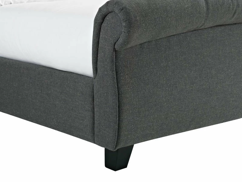 The Arabella bed frame would suit either modern or traditional bedroom themes. Stunning with the scroll top matching foot and headboard. The linen upholstery is fresh and compliments other furniture in the space.Â
