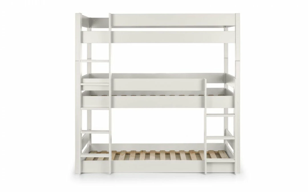 The solid slatted base on each tier provide a healthy supportive foundation for the mattresses. Being solid you can also count on them not to beak another safety aspect to the Julian Bowen Trio Bunk in white.Â