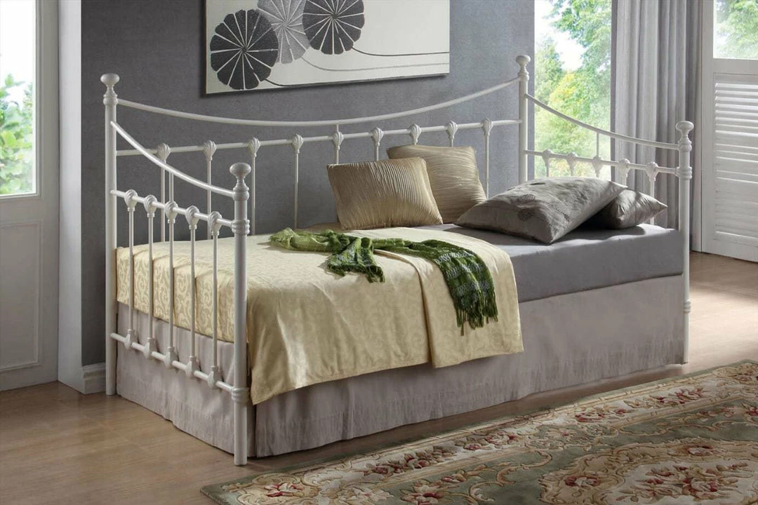 This ivory metal daybed could be the place you spend your afternoons lazing about the house in comfort. The ivory colour is neutral working well with other furniture in the area. This colour is also contemporary best suited to a modern and fashionable home.Â