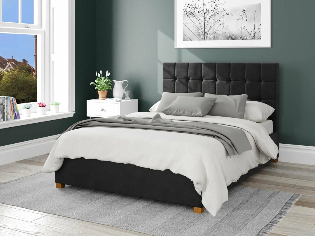 Presenting the Cheshire ottoman bed for all your style needs in the bedroom. With quality padded headboard for a statement. Let the black velvet upholstery feel soft and gentle to the touch before bedtime.Â