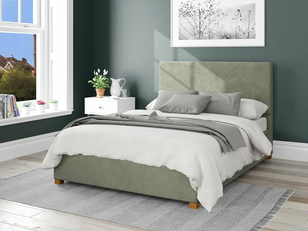 Assert your personality on the bedroom with the Peterborough Ottoman Bed. The modern headboard keeps things uncomplicated. Velvet upholstery adds an inviting theme to the space.Â