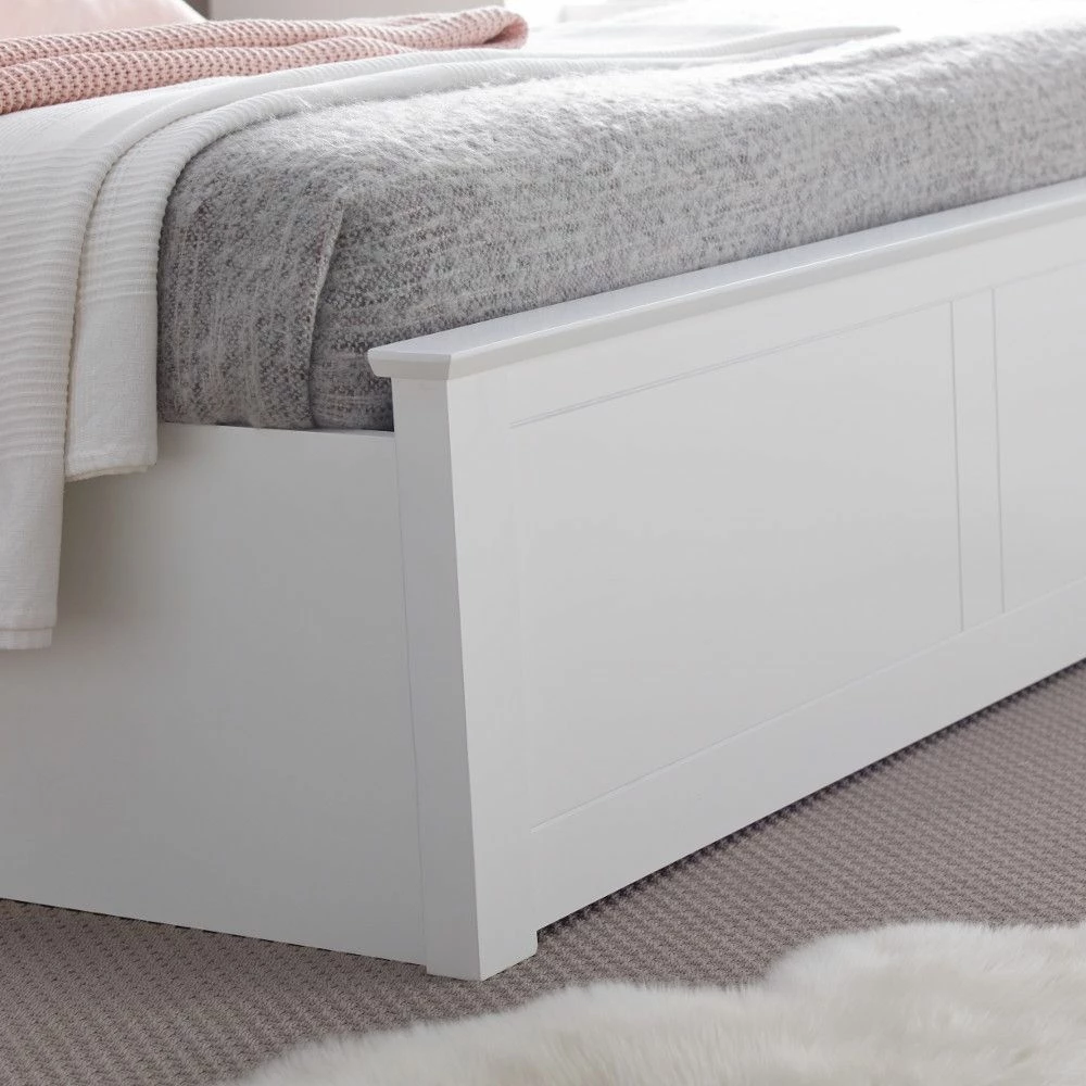 Modern and space saving ideal for family homes. The Copenhagen Ottoman Bed in white would provide a stylish storage solution in the house. With the sprung slatted base and gas piston mechanism your mattress has a quality foundation.Â