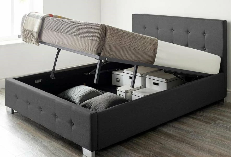 There’s lot’s of storage space underneath for a large range of bedding items like pillows and duvets making more room in other places in the home. With the gas piston mechanism opening and closing the top is effortless, along with the fabric handles. The metal base foundation accompanied by the sprung slats is the ideal partner for your mattress for a sleeping surface. Â