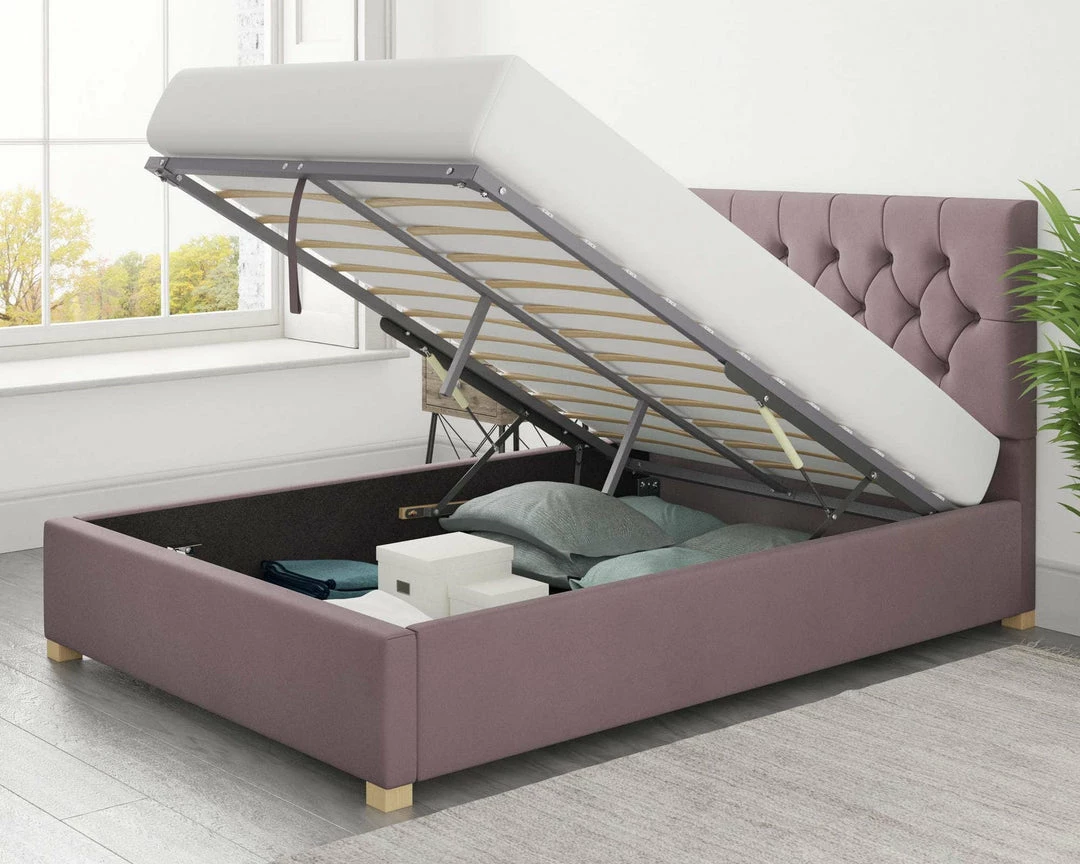 The metal frame is strong this is the foundation to the sprung slatted base. With this style the slats help the mattress in a few ways like with longevity and comfort. It’s easy to open with the fabric handle and the gas lift mechanism. The structure is helped with the feet positioned along the center of the frame making the bed stronger as a whole unit.  Â