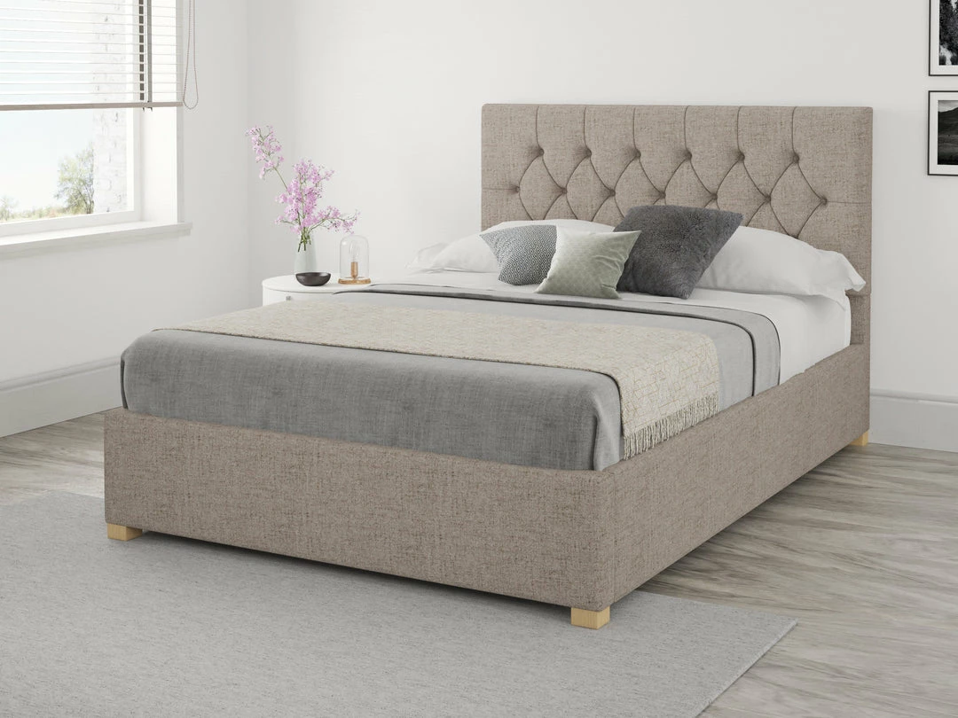 Charming and sophisticated this light brown ottoman bed would make a real statement in any stylish bedroom. The warm light brown fabric upholstery is modern and tough with neutral aspects. Designed to last the wooden frame underneath the upholstery is strong and long lasting adding this ottoman bed means your buying for the future as well as today.Â
