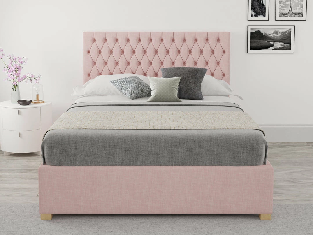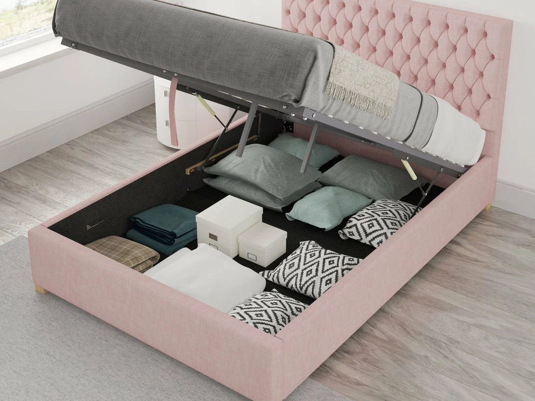 The stylish fabric rose storage solution for the home. With this shade your gains are great when it comes to style. This particular model would suit that unique bedroom bringing a feature to the room. With the diamond shaped button effect headboard this ottoman bed would bring elegance and sophistication at the same time.Â