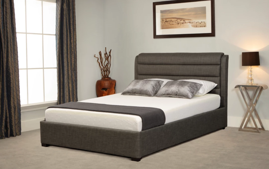 The Lincolnshire Ottoman Bed would make a statement in the bedroom with the unique headboard. With a large amount of padding lay back on this surface while your relaxing enjoying your latest Netflix series. The grey upholstery fabric would bring a modern feature to the bedroom working well with other contemporary furniture.Â
