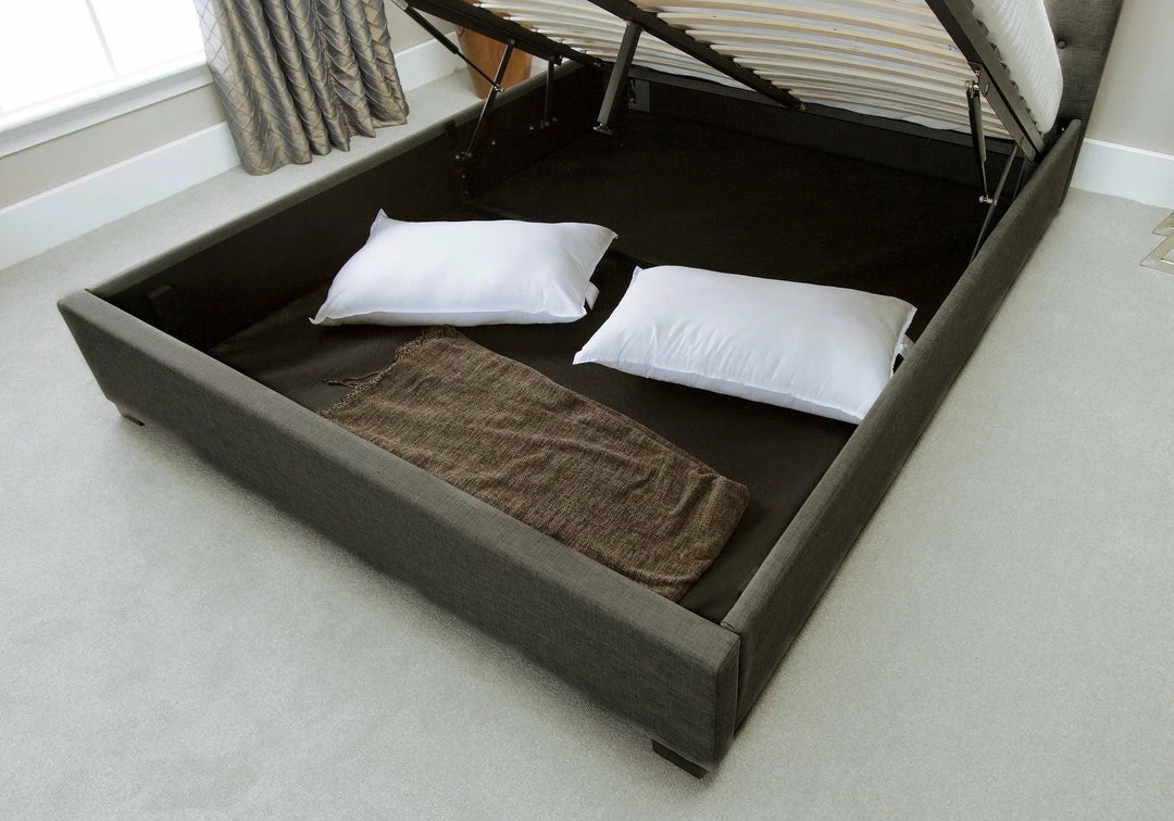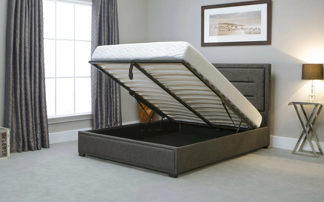 This ottoman bed would be a good suiter for the master bedroom due to the quality. The design is modern and with the grey / Stone upholstery fabric this ottoman beds for contemporary bedrooms. The sizes are also perfect matches for master bedrooms with double, king size and super king size meaning you have options for different sized bedrooms. The sprung slatted base would work well with luxury mattresses offering a supportive foundation. The low foot end would allow light to flow naturally around the bedroom. There’s storage space underneath the bed this could make space in other parts of the house or hold bedding like pillows and duvets.  Â