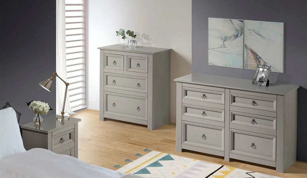 Modern and vibrant this grey bed side table would suit a contemporary themed bedroom. The materials combined add luxury and with a design like this you gain traditional values. With detail in the finish really show the quality of this decor piece.