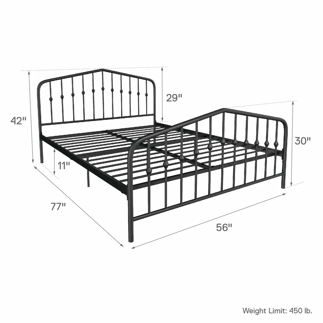 The Bushwick metal bed frame would bring elegance and charm to any stylish bedroom. There’s the detailed design with matching foot and headboard providing a traditional vibe to the space. The slight arch to the charmingly designed headboard setting this metal bed frame apart from the rest.Â