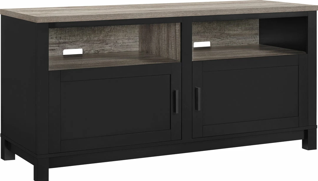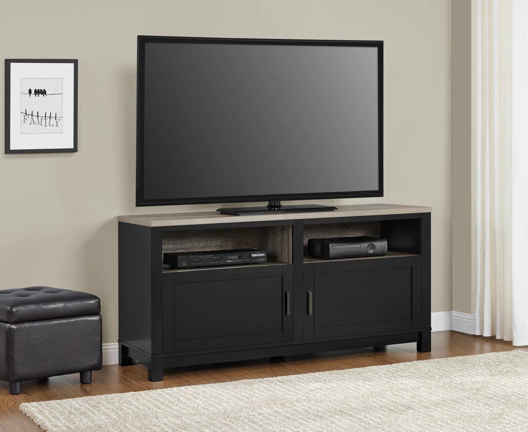 The Carver TV Stand would add style and elegance to any home. There’s storage options with shelves and doors allowing you to organise the area into an orderly manner. The wood and grey or black bring neutral aspects to the buy being able to match with other furniture in the space is a given.Â
