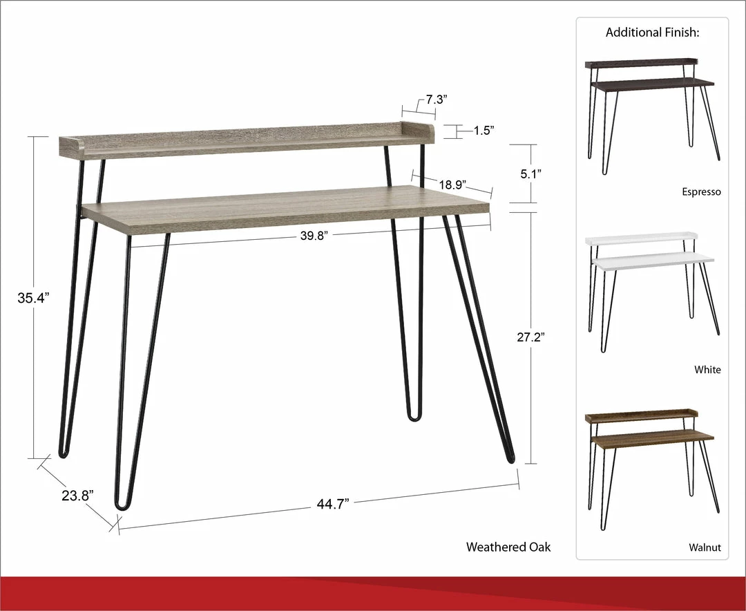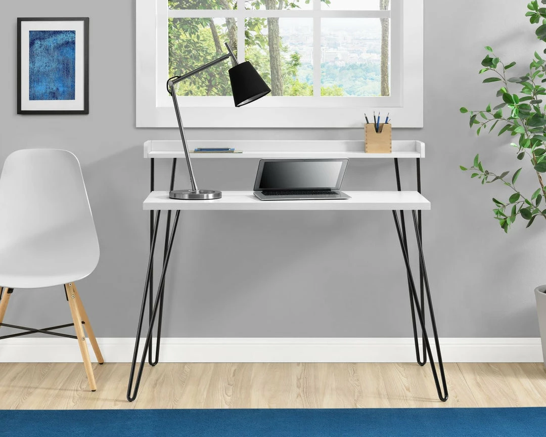 With 2 separate surfaces this desks provides different sections to order your products. Use the bottom layer for your paper work and computer and the top for ornaments keeping the room fresh. The charming design will work well with other office furniture.Â