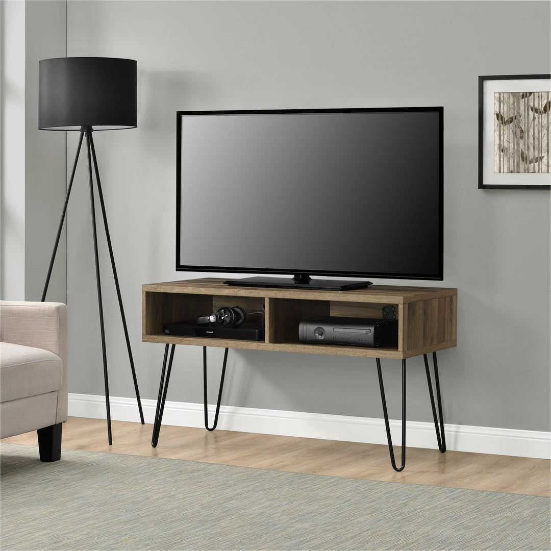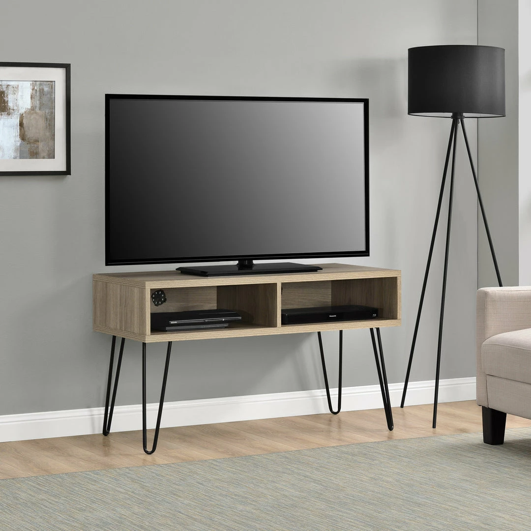 With the metal legs this TV stands incredible stable and reliable with the spread out design. The wooden materials about robustness and strength ideal for a for furniture product in a family home. The size of this TV unit won’t over power the room but it’s fit for purpose. Â