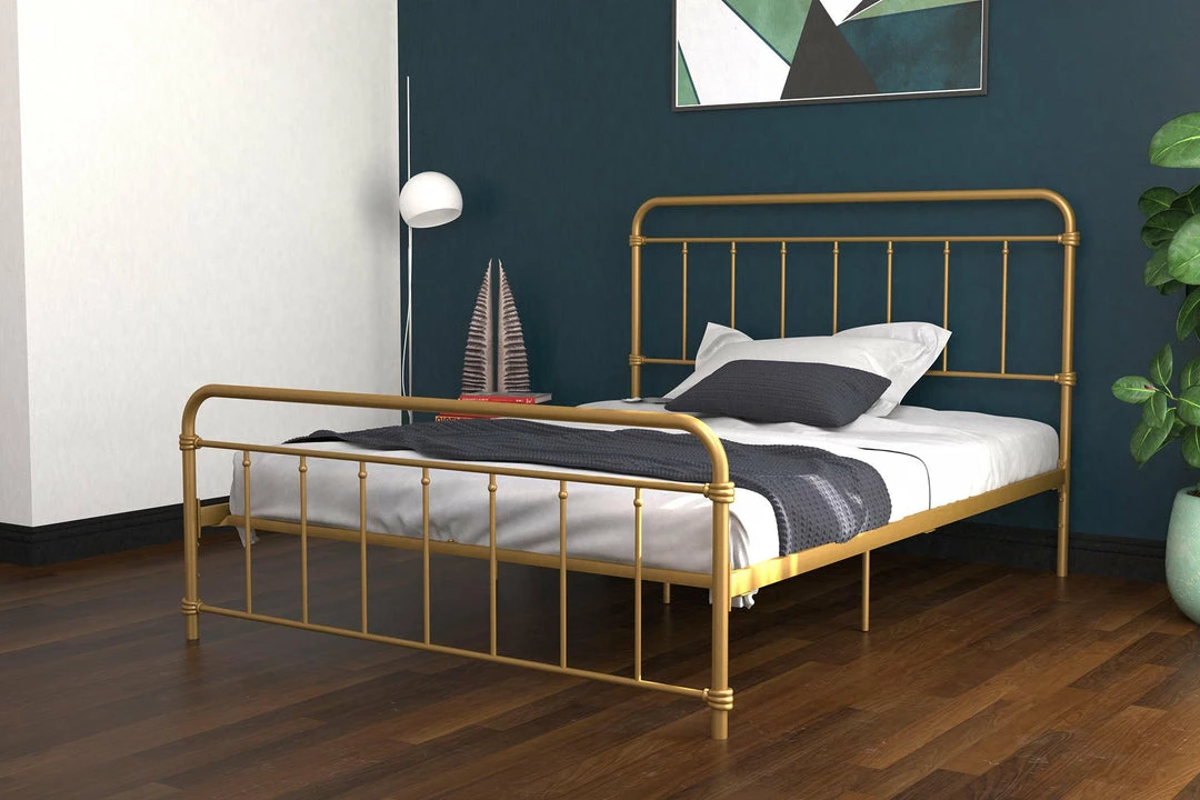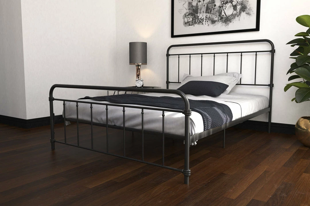 The Wallace bed frame would be a charming edition to any stylish bedroom. With the modern design and matching foot with headboard and curved edge set’s the metal bed apart from the rest. The sophisticated colours would set a contemporary tone in the space with long term values.Â