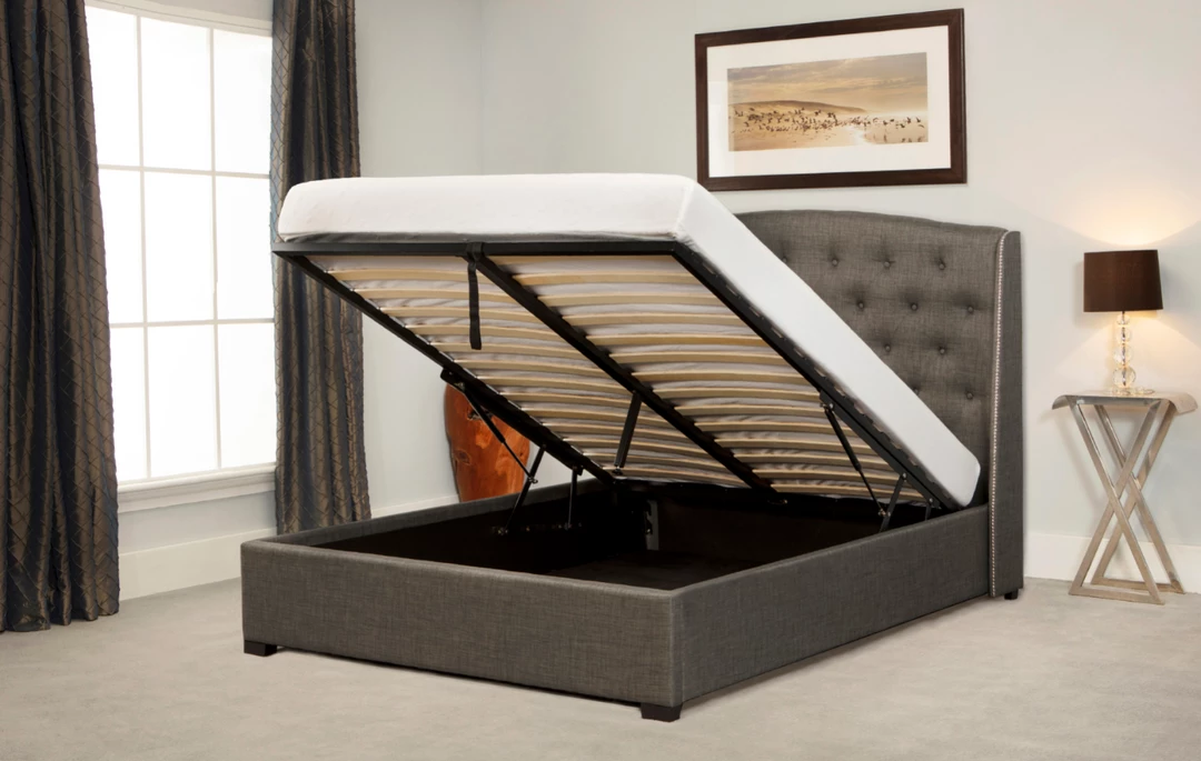 With the Emporia Beds Mayfair Fabric Ottoman Bed hydraulic gas lift mechanism making it easy to use there’s less stress and strain for you. The bottom storage unit has plenty of space for a large range of objects like bedding and boxes.Â