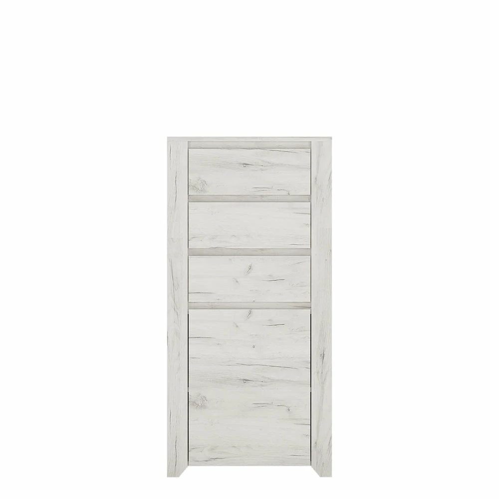 The Furniture To Go Angel 1 Door 3 Drawer Chest is built with laminated board, this will help with any accidents. The white colour means it’s going to fit in with other bedroom furniture.