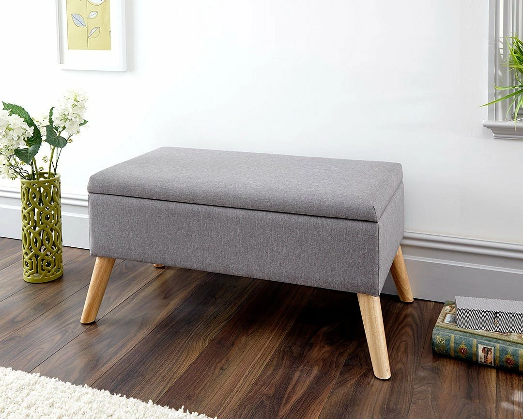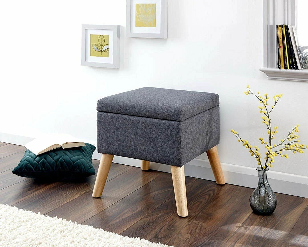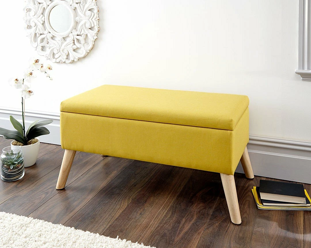 With a simplistic design catering to all your storage needs this ottoman unit is a classic. With a choice of colours on offer including grey and yellow mustard you get options. The fabric finish is in keeping with a modern themed home along with the wooden feet and your contemporary.Â