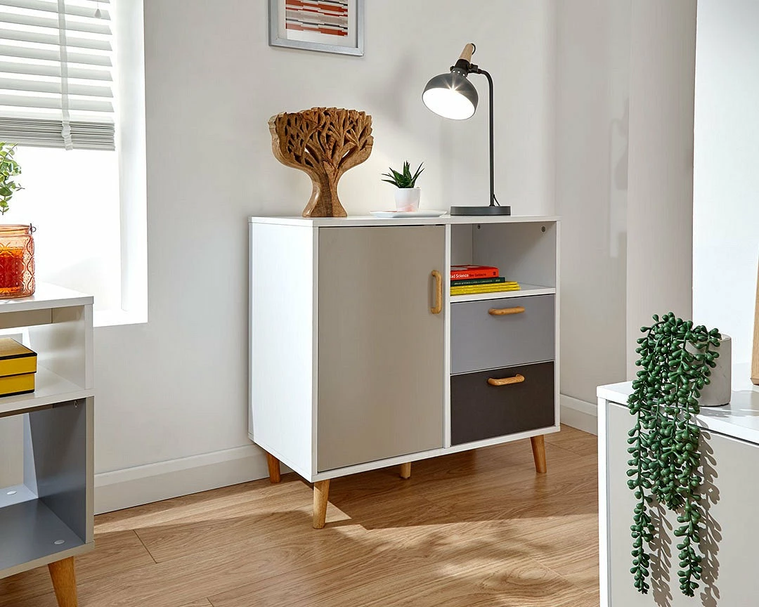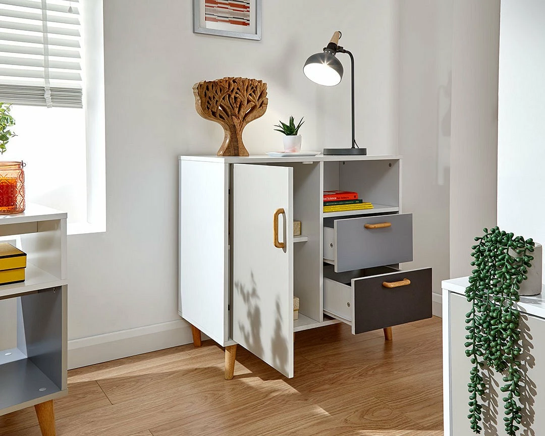With the GFW Delta Compact Sideboard you gain lot’s of surface area above for lamps and plants this could bring light and fragrances to the area. The stylish feet bring a retro vibe and also give the whole unit a sturdy and reliable foundation. Finished with wooden handles making this cabinet easily accessed when needed. Â