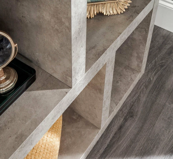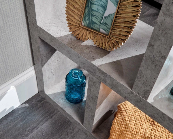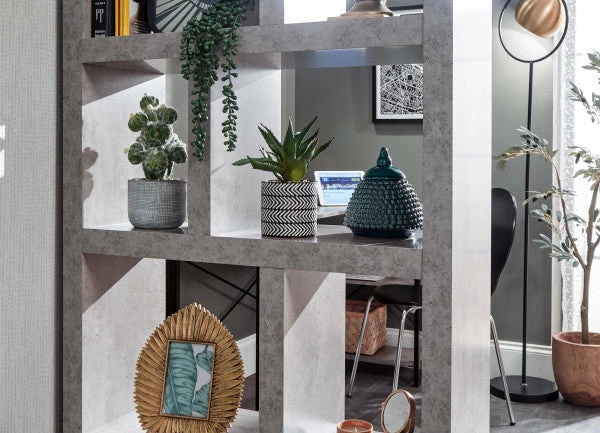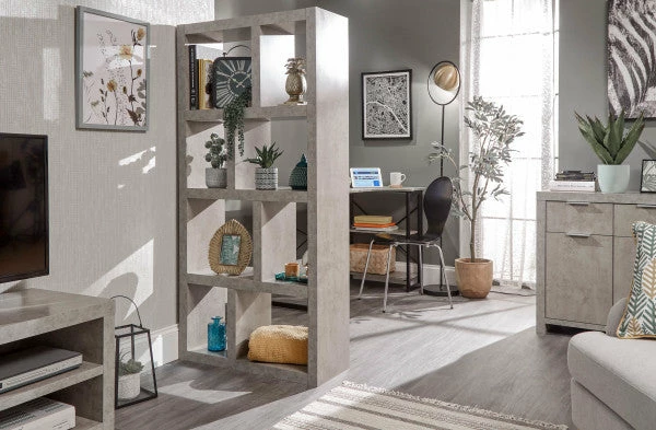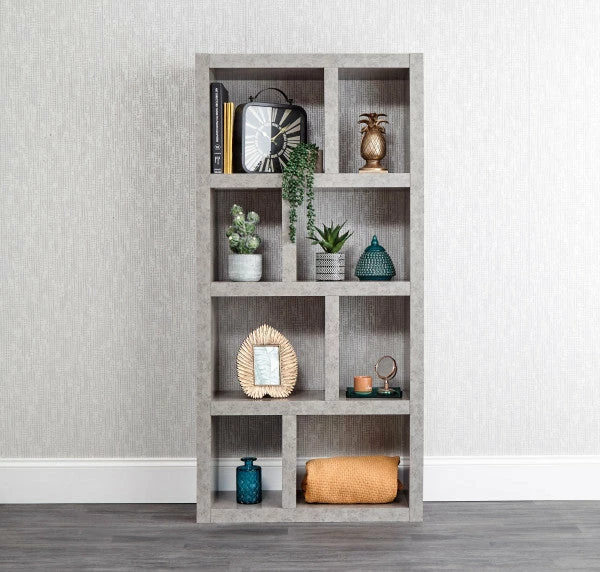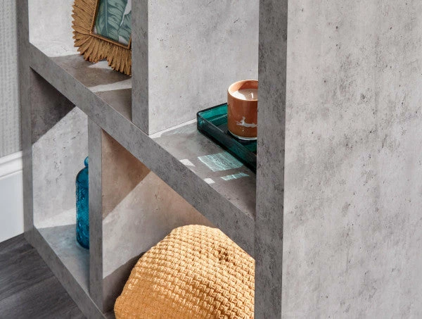 With the chunky panels the constructions solid. The concrete colours going to bring a modern and stylish theme to the room. Keep things in order with different sections on the book case.Â