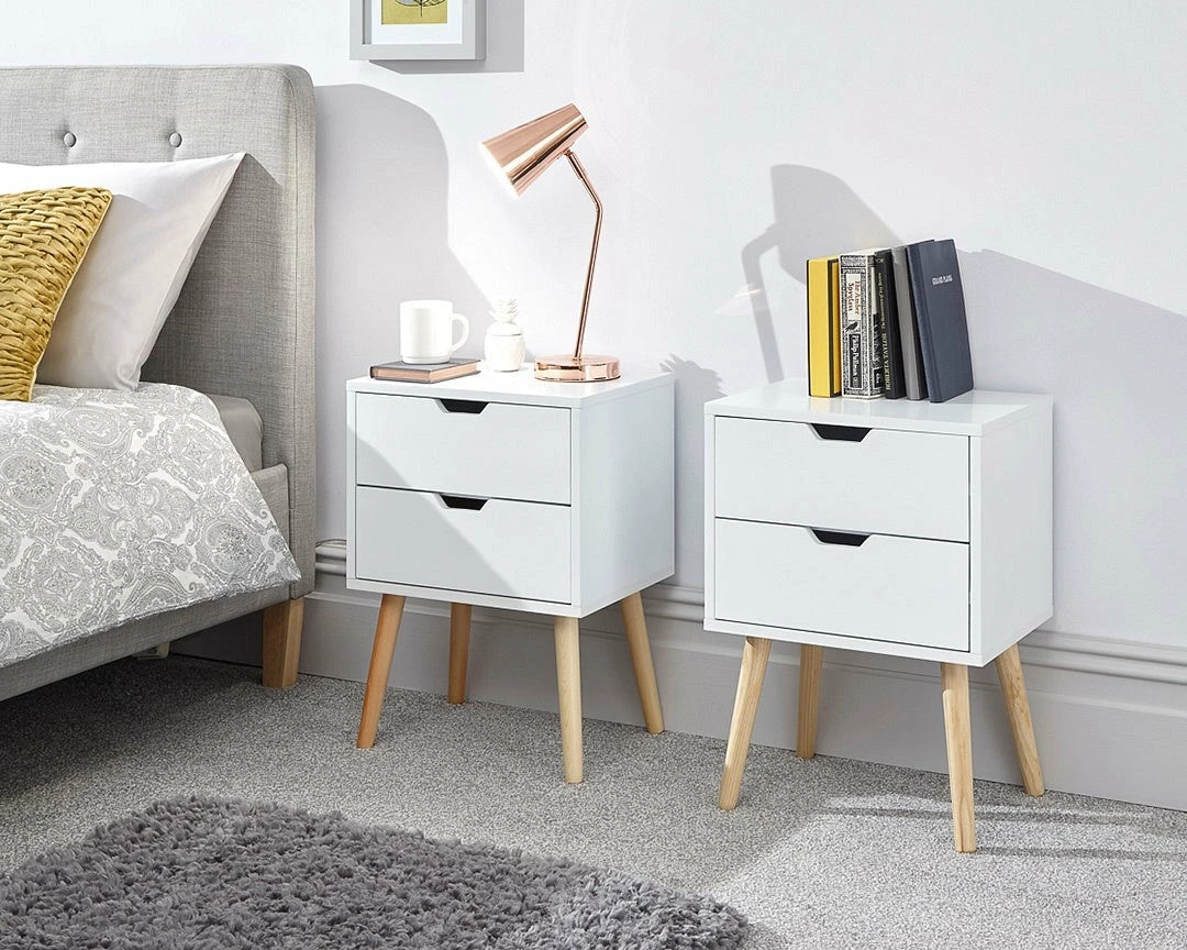 With the GFW Nyborg 2 Drawer Bedside coming on wooden legs spread for stability these chests are sturdy. There’s lot’s of area on the top for added storage space or lamps bringing light into the bedroom. These flat packed furniture bedside tables are easy to deal with on delivery and journey to the bedroom. Â