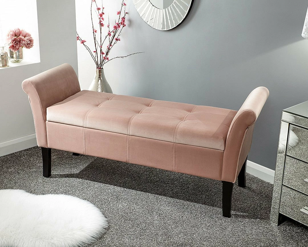 Elegant and sophisticated this plush fabric with velvet piled window seat would make the perfect edition to any stylish home. The colours are fashionable with teal, pink and russet all adding there own charm to the chosen room. The contemporary button feature along with the padded seat adds luxury with there presence.Â
