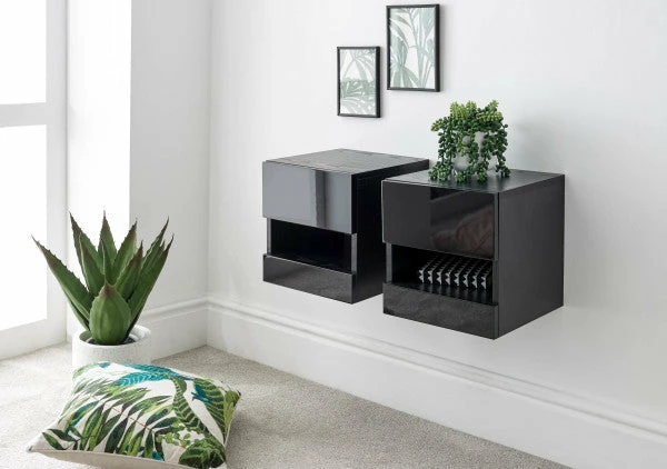 The bedside tables to add if your searching for a modern theme. With a high-gloss monochrome finish maintaining is effortless. The pair would work well with any stylish bed and mattress.Â