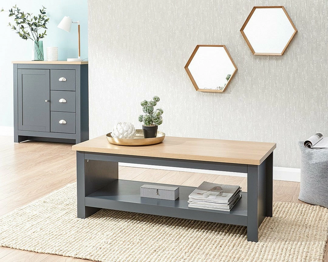 Whether the GFW Lancaster Coffee Table With Shelf is bought with the rest of the range or alone it’s going to match. The cream grey and blue are all neutral which is great for mixing with other furniture in the room. With the grounded design this coffee table is going to be sturdy and stable at all times.Â