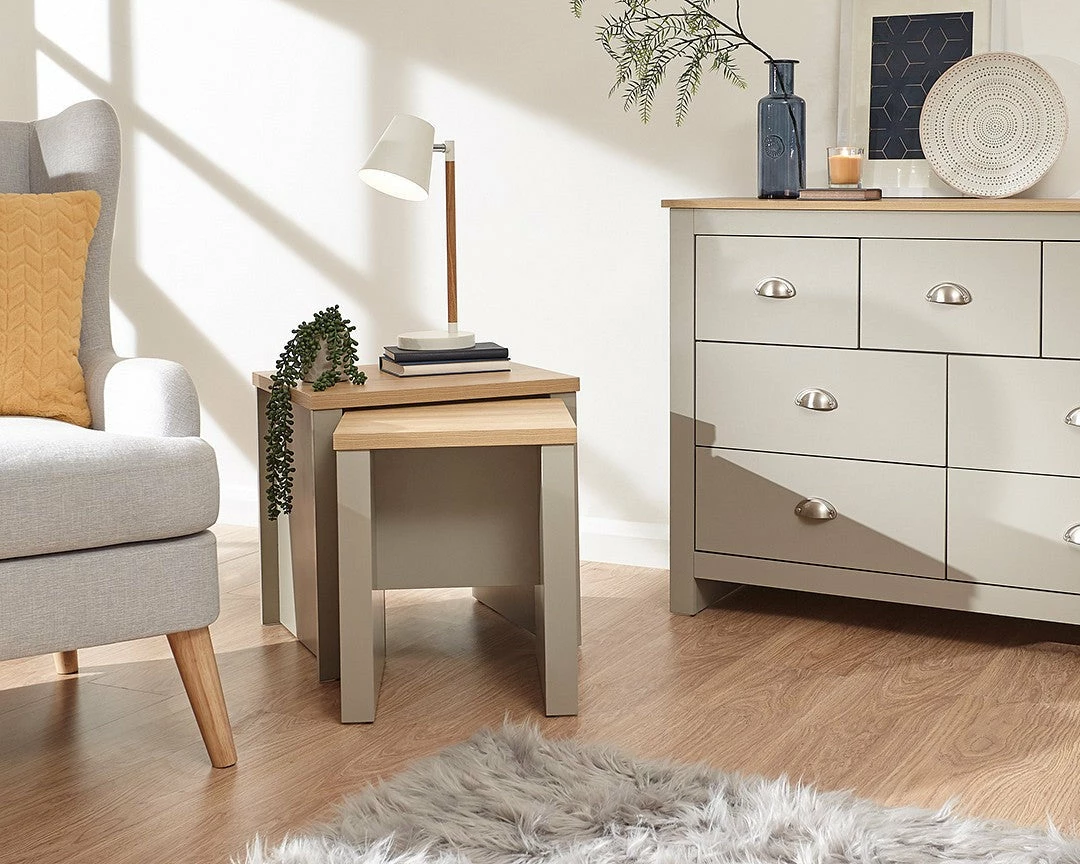 The GFW Lancaster Nesting Tables could work well with the rest of the collection or alone, the colours are neutral so matching won’t be an issue with other furniture. These nesting tables could bring added advantages bringing out when needed and not taking up as much space as with larger furniture for the same requirements. This is a flat packed furniture product so it’s easily dealt with on the day of delivery.Â