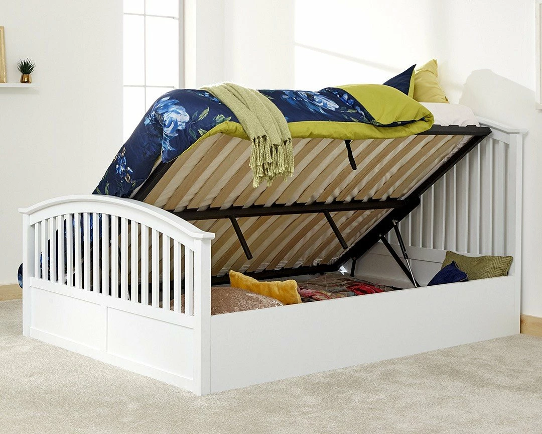 The wooden ottoman bed by GFW would bring a useful item to any home. With a great deal of storage space for all your bedroom accessories. The curved shaker style foot board and headboard really do make this bed stand out from the rest. One of the best ottoman beds on the market today !Â
