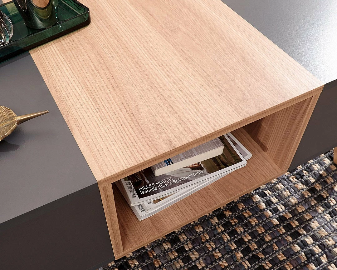 With the sophisticated coffee table your morning and evenings can’t get much better. There’s storage space for your magazines and books with plenty of area for your cups of tea and coffee to be placed. The grey and oak finish is modern with a charming effect.Â