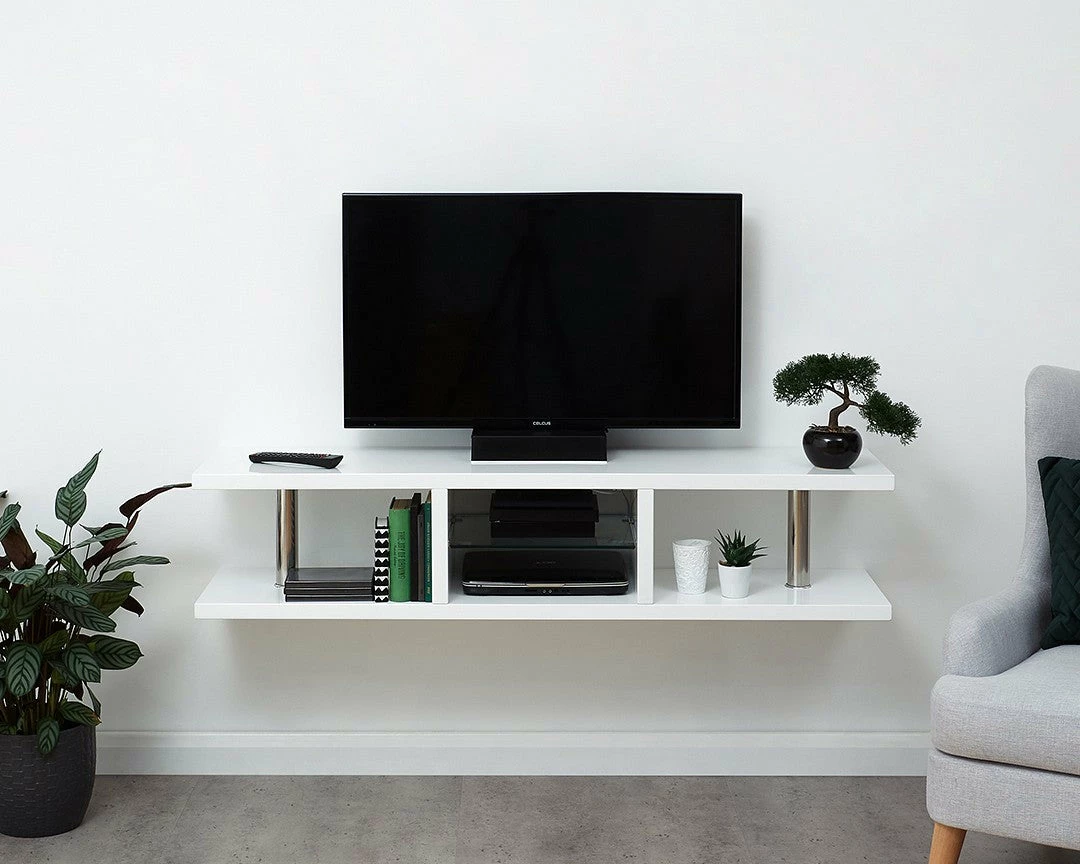 Whether the GFW Polar High Gloss Wall Mounted LED Display Unit is placed in the living area or bedroom it’s effective. The separate shelving compartments can be used for multiple objects like DVD’S and Sky boxes adding organisation values to the buy.Â