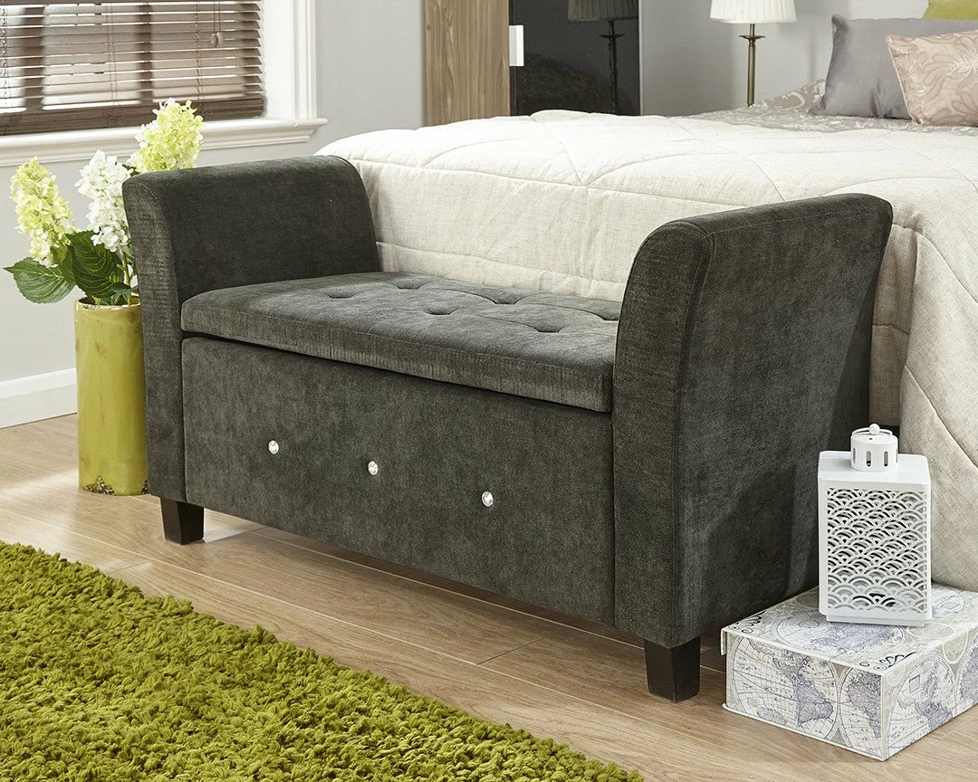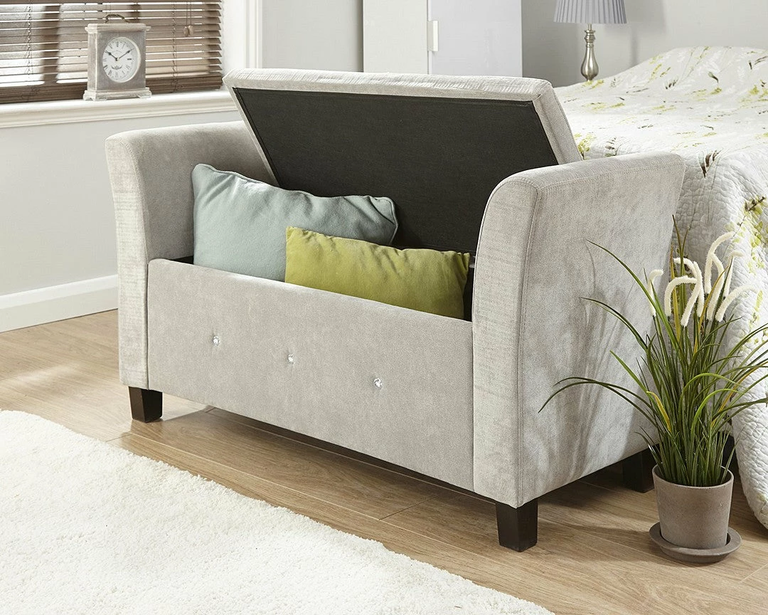 Adding charm with it’s presence this storage seat would make for a luxury addition to any room in the home. The dazzling Diamante studs come with glamour and prestige while the fabric finish is sleek and luxurious.Â