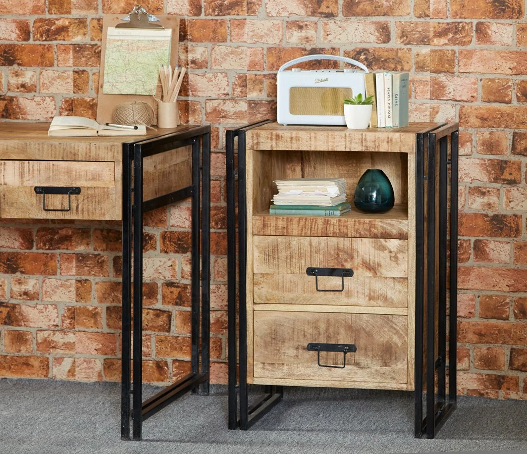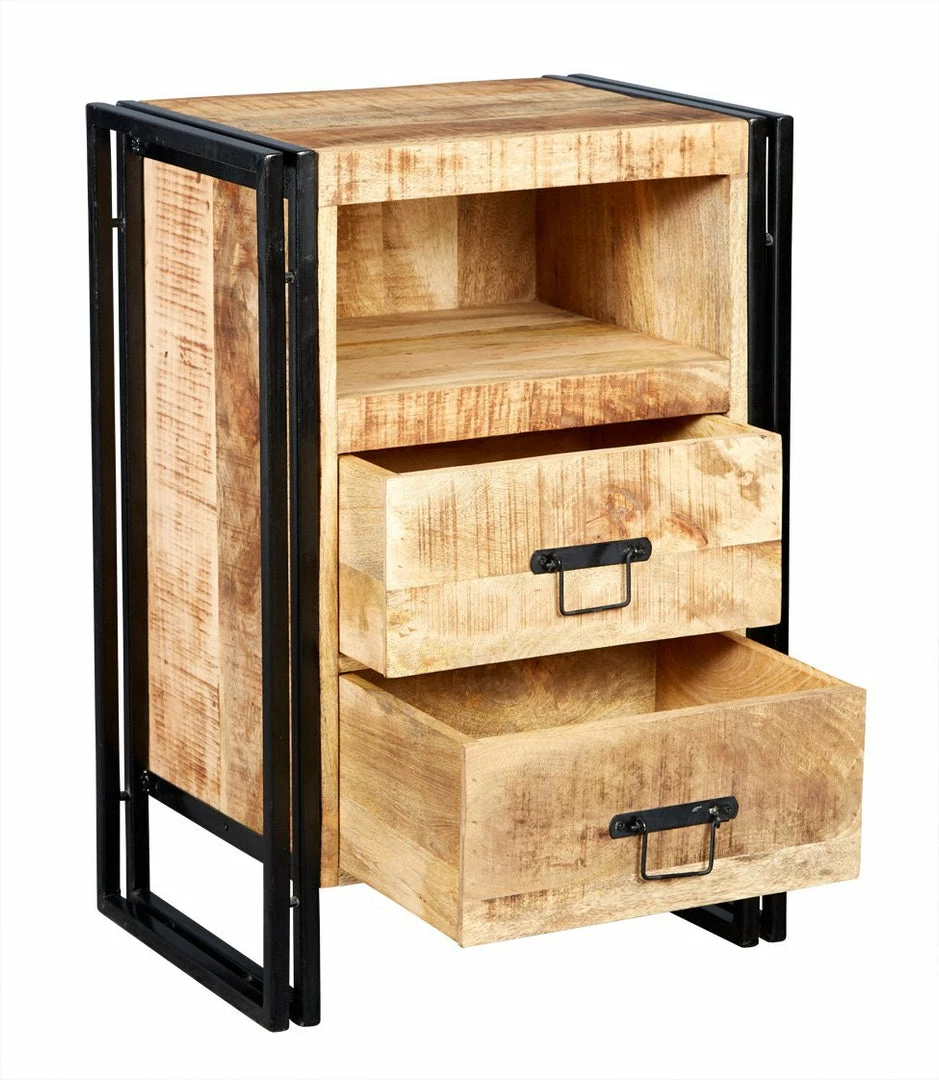 Indian Hub Cosmo Industrial 2 Drawer Side Table
